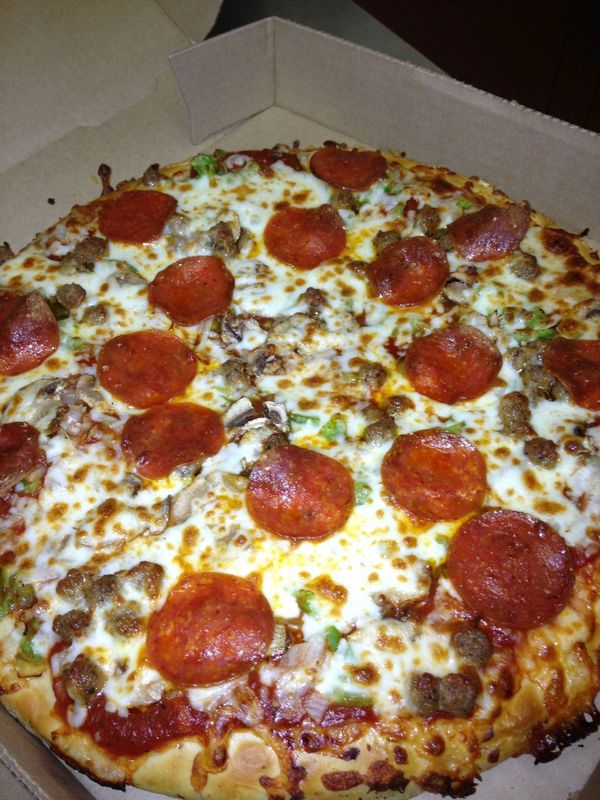 . Had two pizzas pepperoni and meatball. 1100 AM - 1200 AM Next day Tue. All Meat Pepperoni sausage.